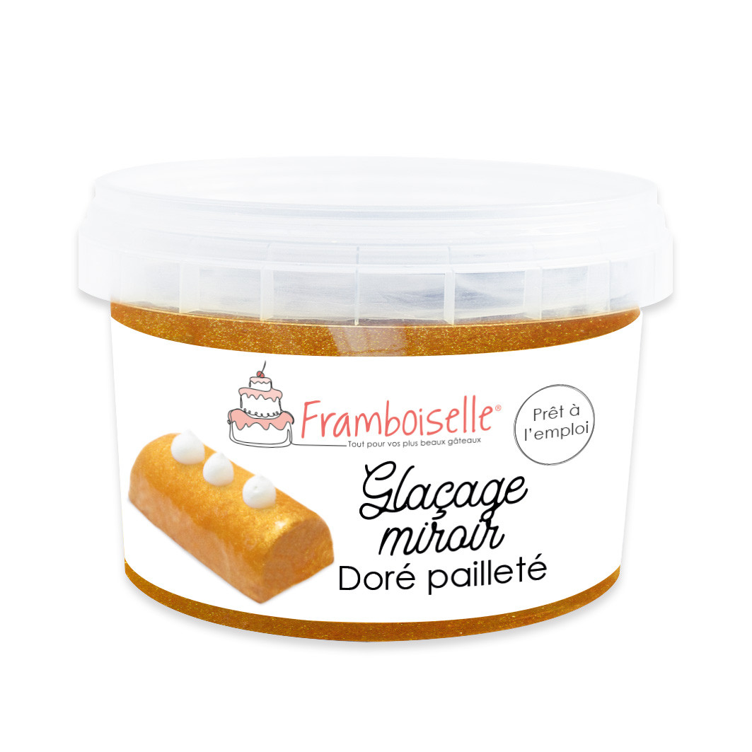 Réalisez un glaçage miroir doré pailleté très étincellent sur vos entremets grâce à cette préparation prêt à l'emploi !