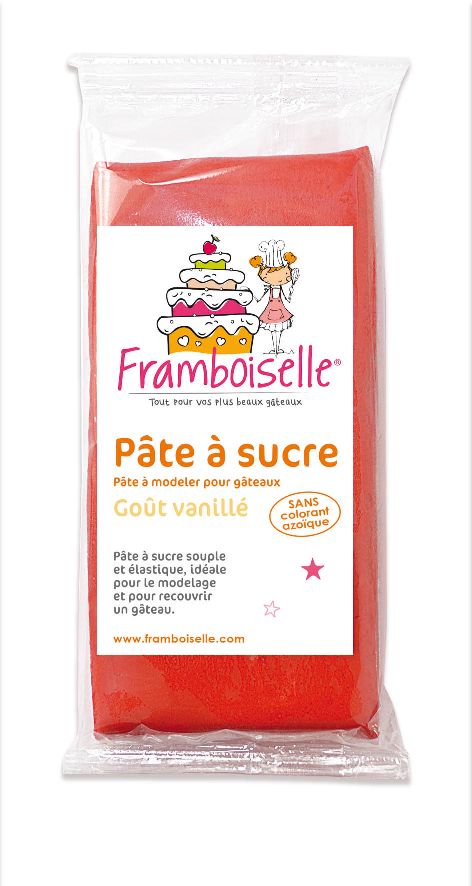 Idéale pour le cake design, la pâte à sucre rouge Framboiselle® est de qualité professionnelle, souple, élastique, elle ne se déchire pas et ne colle pas.