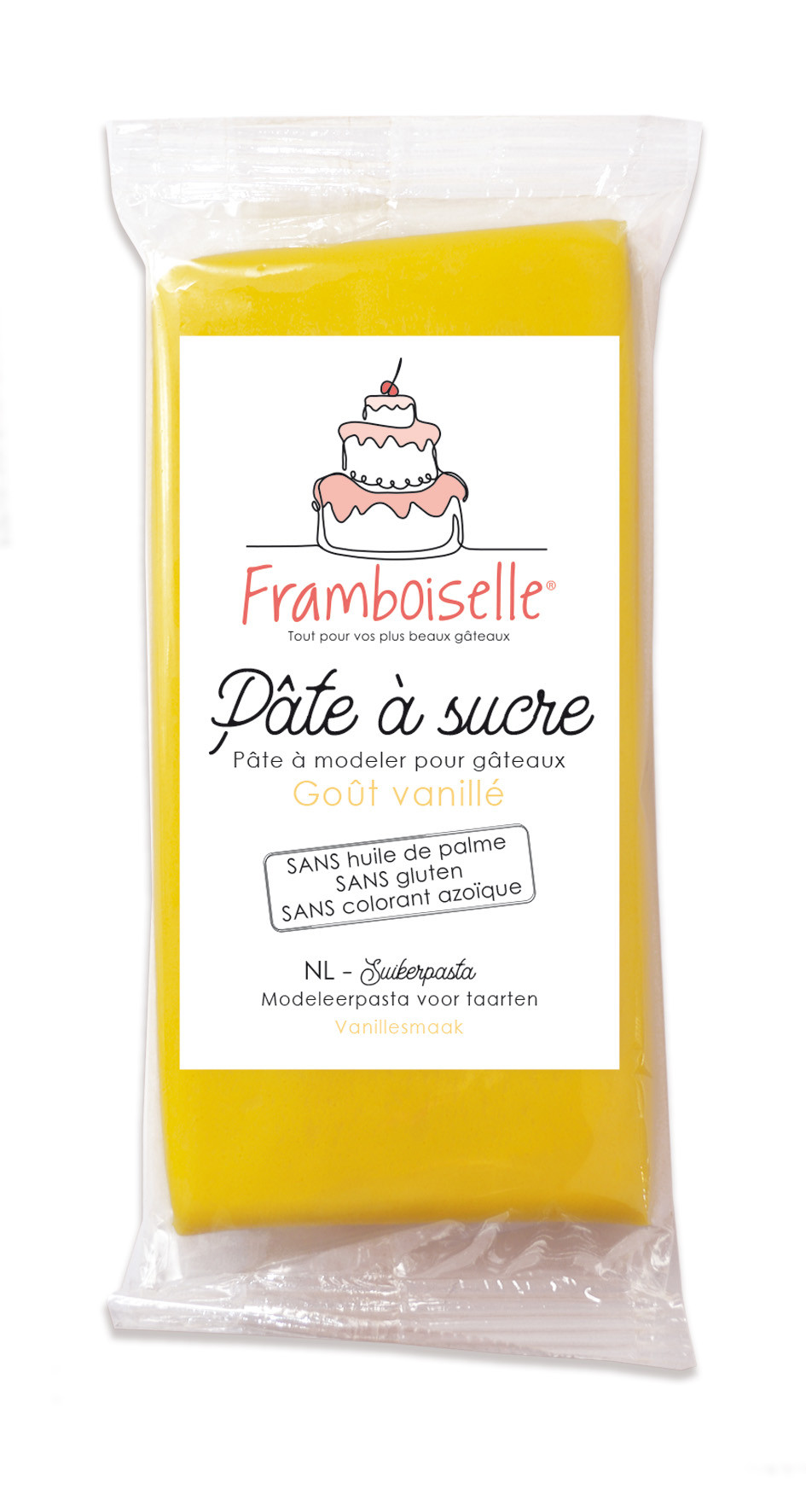Idéale pour le cake design, la pâte à sucre jaune Framboiselle® est de qualité professionnelle, souple, élastique, elle ne se déchire pas et ne colle pas.