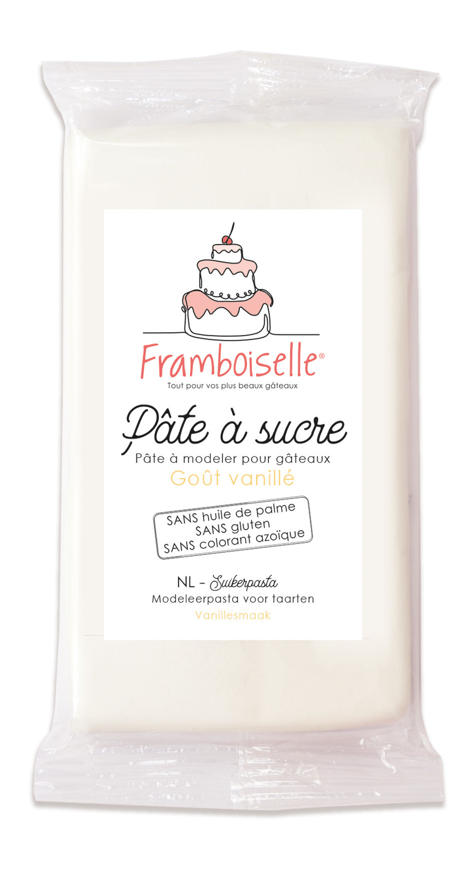 Idéale pour le cake design, la pâte à sucre blanche 500g Framboiselle® est de qualité professionnelle, souple, élastique, elle ne se déchire pas et ne colle pas.