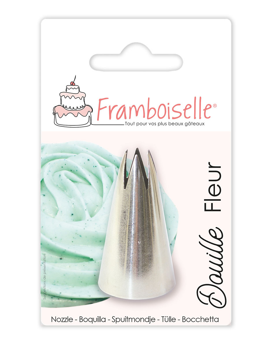 Douille à fleurs en inox pour dresser les ganaches ou crèmes de vos cupcakes en forme de fleurs.